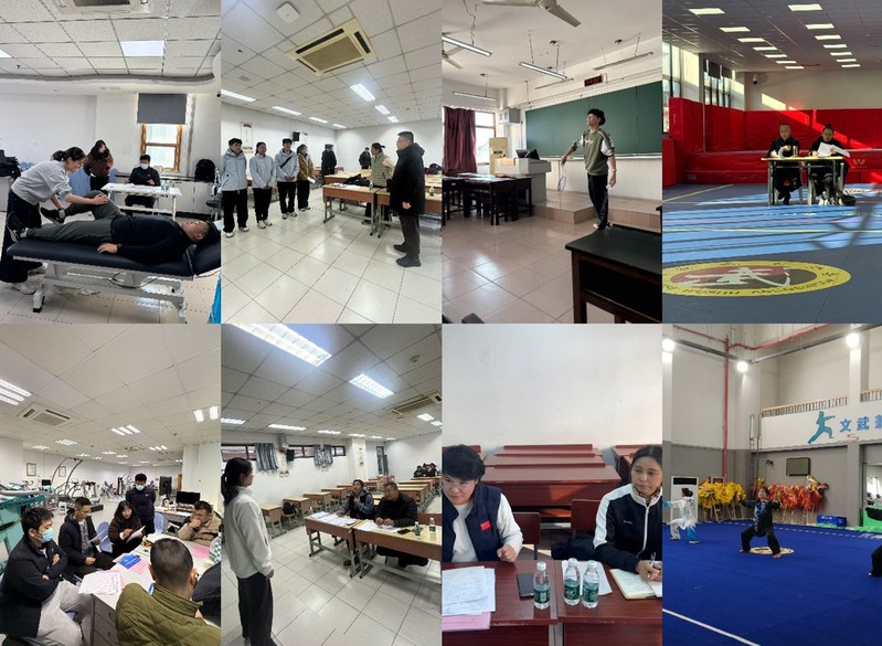 随着开幕式的结束,一场精彩纷呈的技能比拼正式拉开帷幕。在教室、场馆及实验室等比赛现场,同学们以饱满的热情和扎实的专业技能投入到了激烈的比赛中。体育教育专业的同学们呈现了精心设计的教学方案与生动的模拟课堂,从田径、体操到球类项目,每项技能演示都跃动着蓬勃朝气;运动训练专业的同学们通过自选项目的技战术演绎,展现出精湛的运动技艺与深刻的战术洞察;武术与民族传统体育专业的同学们在模拟教学中融入武学真谛,无论是套路演练、散打对抗还是气功导引,都将传统精髓诠释得淋漓尽致;运动康复专业的同学们则先进行理论考核,再展示现场急救、肌骨康复及运动处方指导等技能。参赛同学们扎实的专业理论基础、精湛的运动技能水平、出色的教学组织能力以及灵活的临场应变能力,全面展示了苏州大学体育学院学子昂扬向上的精神风貌和追求卓越的专业品质。