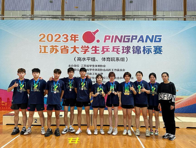 2023年12月1日-3日,江苏省学生体育协会主办的2023年江苏省大学生乒乓球锦标赛在南京信息工程大学圆满落幕。我院10名学生参加了女团、男团、女单、男单、女双、男双、混双七个项目的比拼,最终斩获3金、4银、3铜的优异成绩,共获得28个奖项。