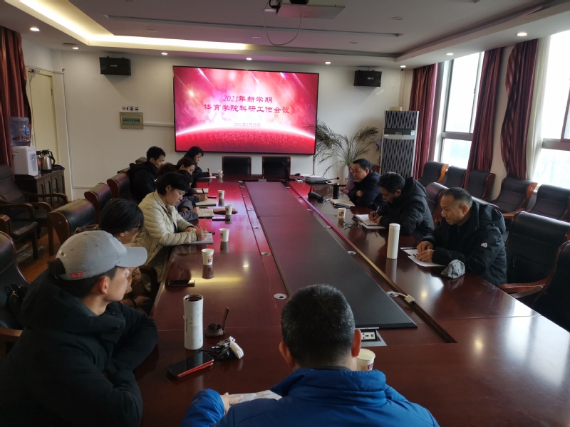 2021年2月25日上午9:00,我院在文辉楼217召开新学期科研工作会议。会议就科学谋划体育学院十四五科研规划听取学院中层干部建议和意见,并就当前科研常规工作进行部署。学院各系正副主任和教研室主任参加了会议。会议由李龙副院长主持。