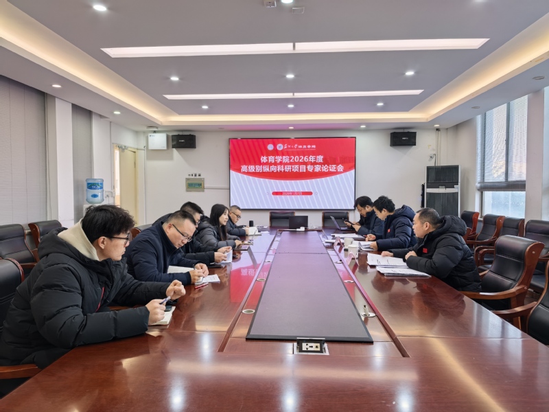 为进一步提升我院高级别科研项目申报质量和成效,1月7日上午,学院组织召开2026年度高级别科研项目第二轮专家论证会。此次论证会特邀上海体育大学卢文云教授和武汉体育学院陈刚教授莅临指导。论证会由学院副院长张大志主持。