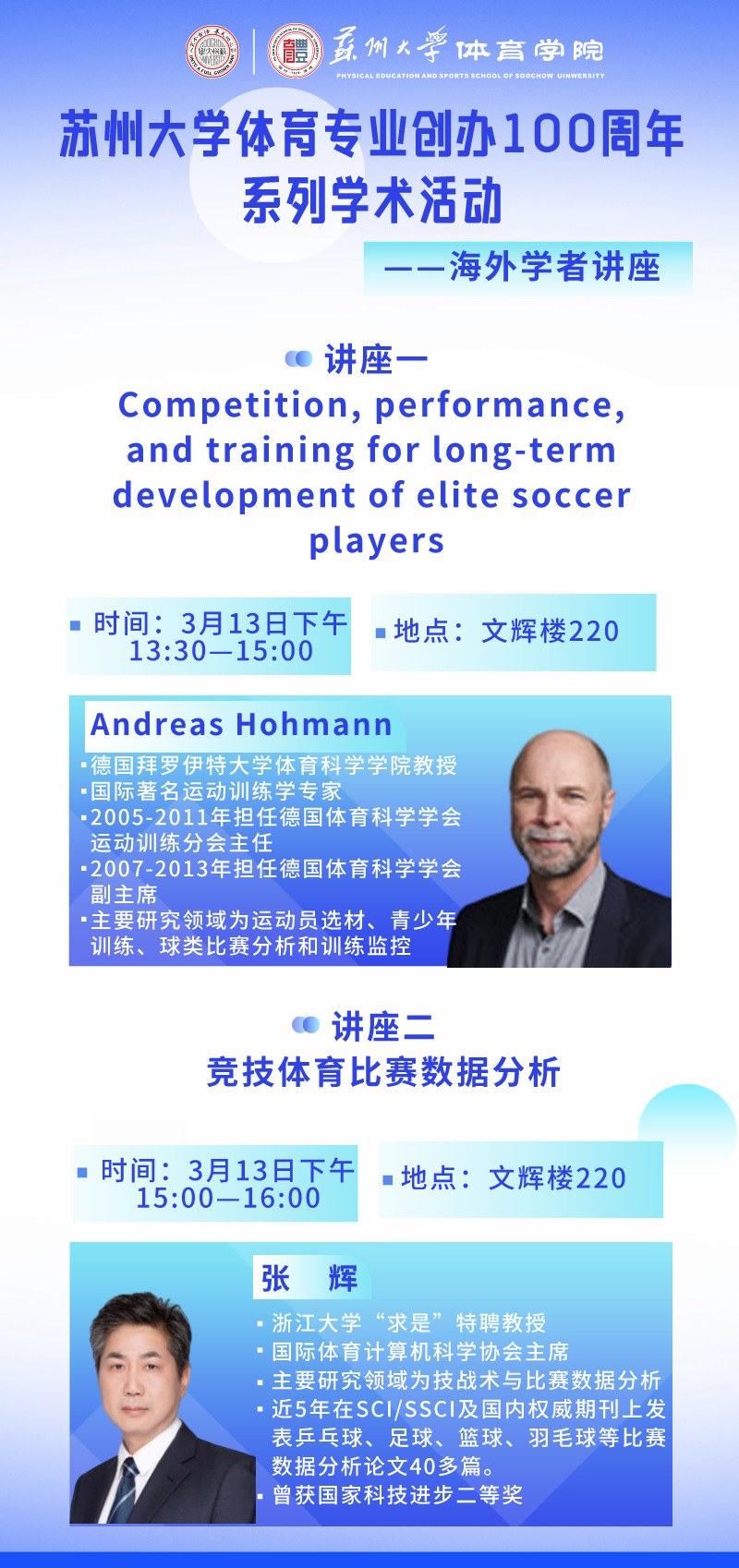 苏州大学体育专业创办100周年系列学术活动——海外学者讲座