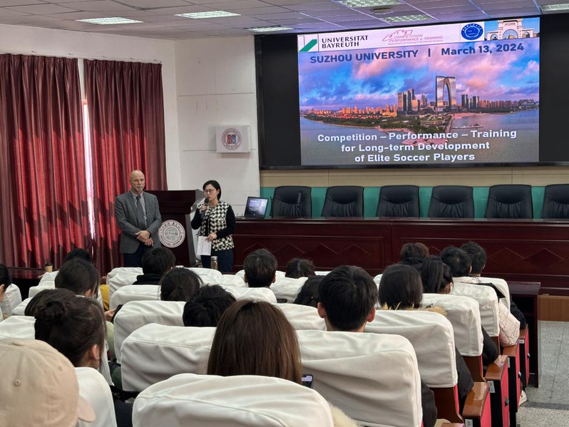 为营造良好的科研氛围,提升学院研究生的学术理论水平和创新思维能力,推动我院研究生培养水平持续高质量发展,苏州大学体育专业创办100周年的系列学术活动的海外学者讲座正式开讲。2024年3月13日下午,我院邀请了国际著名运动训练专家、德国拜罗伊特大学体育科学学院Andreas Hohmann教授和国际体育计算机科学协会主席、浙江大学“求是”特聘教授张辉教授来校讲座。本次讲座由运动训练系副主任杨青老师主持,在校研究生到场聆听,共享学术盛宴。