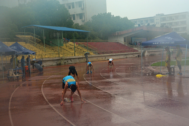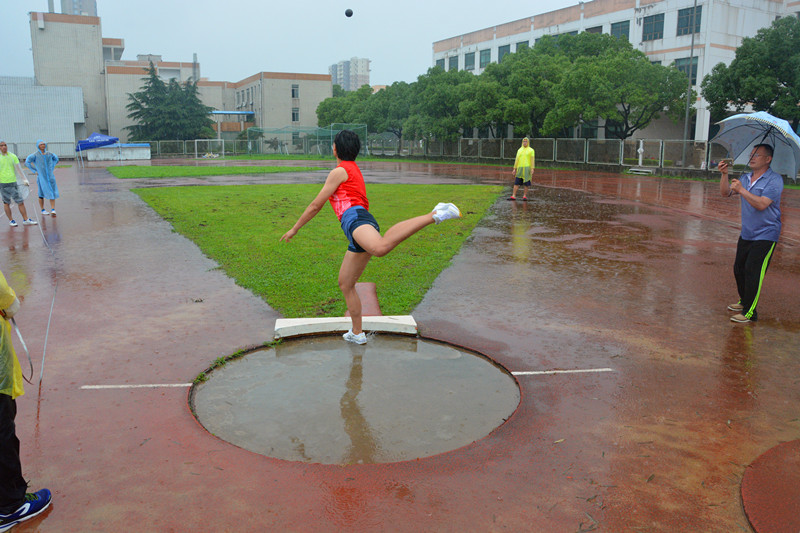 6月12日上午,滂沱大雨没有阻挡各高校学子们的交流热情,比赛正常进行,南京师范大学体育学院党委书记李云阁、党委副书记薛枫、副院长蒋静华、扬州大学体育学院副院长李宁川、盐城师范学院体育学院院长戴俊、我院党委书记邓国林、院长陆阿明、副院长雍明、党委副书记副院长李伟文等出席交流赛开幕式。本次比赛裁判由我院田径教研室所有老师及15体教全体学生担任,同学们在老师指导下风雨中实践实习田径裁判工作。