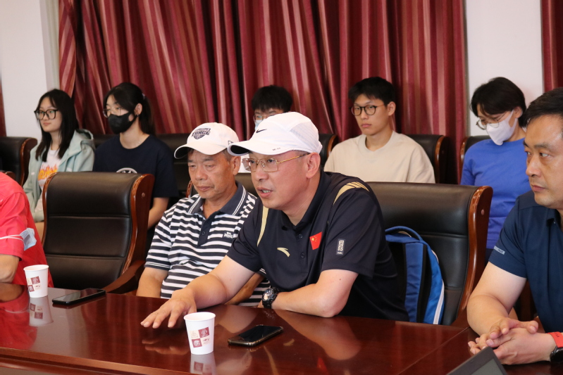 丁海峰首先介绍了我校本届运动会备战与参赛情况。省运会作为我省最高级别的综合运动会,每四年举办一届,是检阅全省各高校群体工作开展、运动队训练成果的盛会。在校体委的领导下,我校将参加17个大项中的13个大项的比赛,共有16名教练员,200余名运动员参加此次比赛。各运动队自组队以来,积极备战,常态化开展训练,王鲁沛副书记亲赴一线给各运动队加油鼓劲,并帮助同学们解决了在校期间的实际困难。虽然今年疫情发生以来,部分运动队封校进行训练遇到了不少困难,但全体教练员、运动员咬紧牙关、攻坚克难、专心备战,竞技水平均由不同层次的提升。
