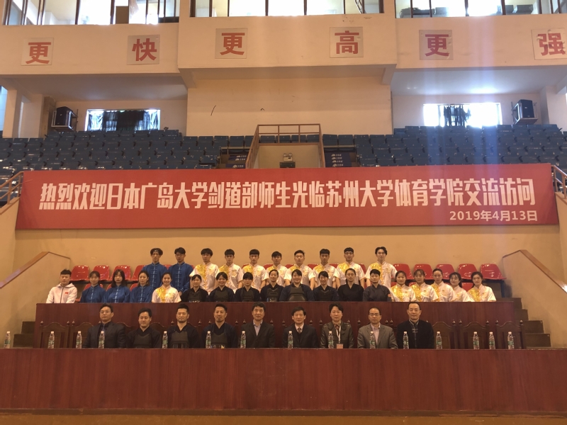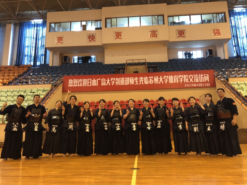 2019年4月13日,广岛大学剑道部师生到我院进行交流。院长王国祥、党委书记杨清、党委副书记李伟文、副院长陶玉流、民族传统体育系主任张宗豪等参加了交流活动。