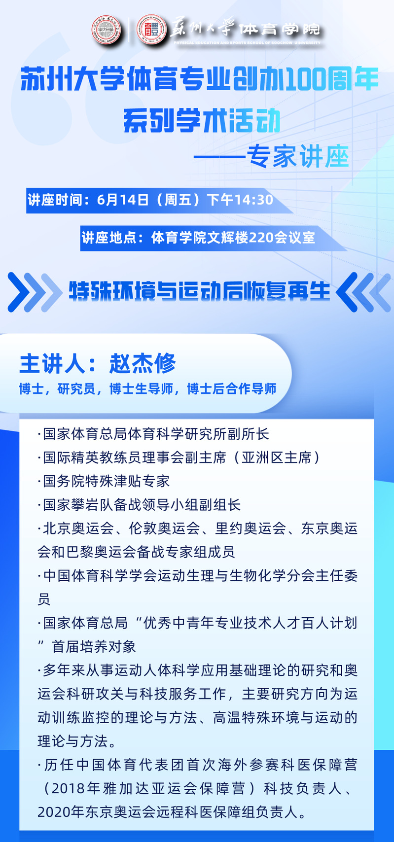 苏州大学体育专业创办100周年系列学术活动——专家讲座