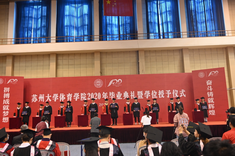 6月25日上午8:30,体育学院2020届毕业典礼暨学位授予仪式在东区体育馆举行。学院党政院领导、学位评定分委员会委员、研究生导师和教师代表、2020届毕业生、家长代表等出席了典礼和仪式。学院党委副书记、副院长丁海峰主持了典礼和仪式。