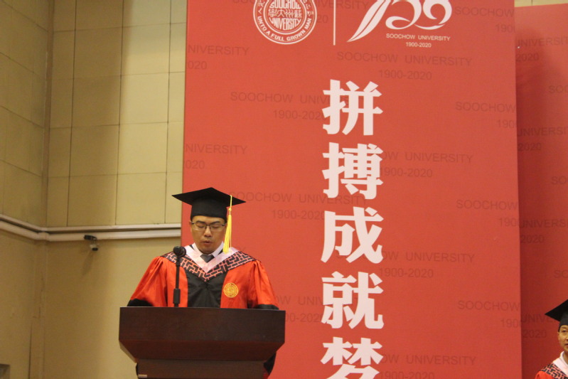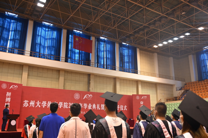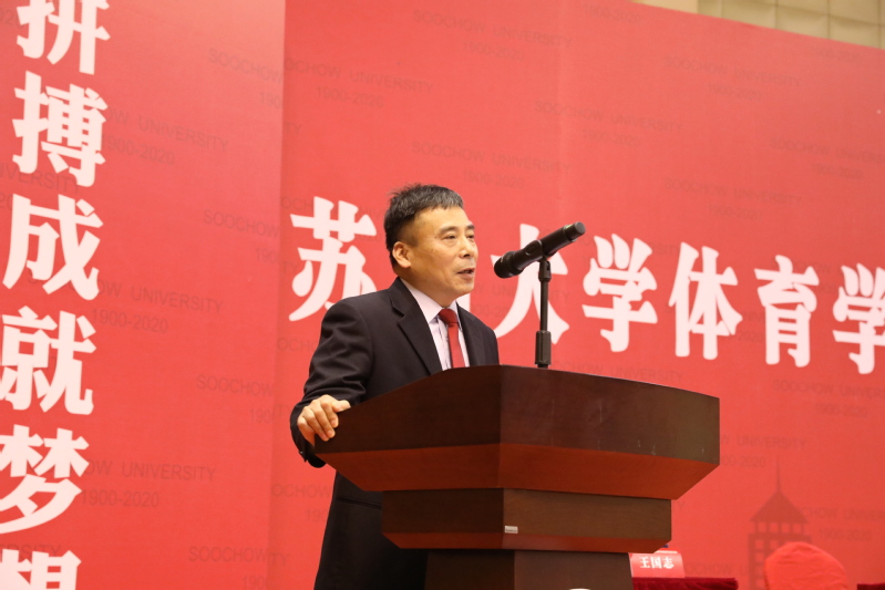 体育学院院长王国祥教授首先致辞。王院长的致辞情深意切,饱含深情,他勉励同学们要坚守底线、砥砺前行、担当大任、奋发有为,希望同学们要相信自己的学问,永远不要放弃学习,希望每一位毕业生,无论身在何时何地,都不要忘记国家的精心培养、母校的辛勤培育、师友的教诲陪伴、父母的呵护养育,永远怀揣“养天地正气,法古今完人”的文化基因,把苏大体院的声誉、把苏大体育人的精神,播撒到五湖四海。