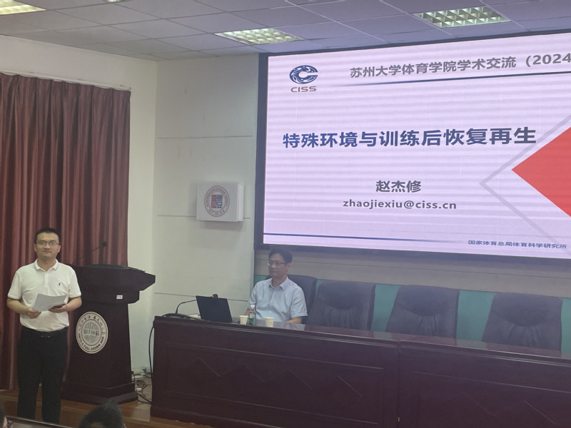 为迎接苏州大学体育专业创办100周年,营造良好的科研氛围,推动我院专业建设高质量发展,2024年6月14日下午,我院邀请了国家体育总局体育科学研究所副所长、国际精英教练员理事会副主席(亚洲区主席)、国务院特殊津贴专家赵杰修教授和香港理工大学体育科技研究院资深研究员、香港裘槎基金学者张德文博士来校讲座。体育学院党委书记朱建刚、运动人体科学教研室主任张庆、实验中心主任王国栋出席了本次活动,运动康复系余嘉、李爱萍等老师,以及运动康复专业本科生和研究生到场学习,共享学术盛宴。
