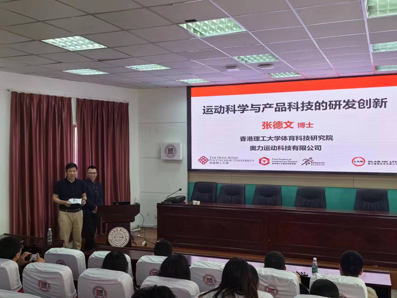 第二场讲座由朱建刚主持。张德文博士结合自身科学研究经历,以“运动科学与产品科技的研发创新”为题展开演讲。张博士从运动生物力学及人体与产品的相互作用,体育产品设计、材料及生产技术,运动测量、反馈及仪器配置,运动训练与康复治疗等方面生动地讲解了如何让体育运动变得更有趣、更有回报、更安全,并向同学们提出未来科研工作的建议。张博士的讲座充满激情,干货满满,在场同学们都对体育科技展现了极大的兴趣与热情,并与张博士展开了学术探讨和互动。