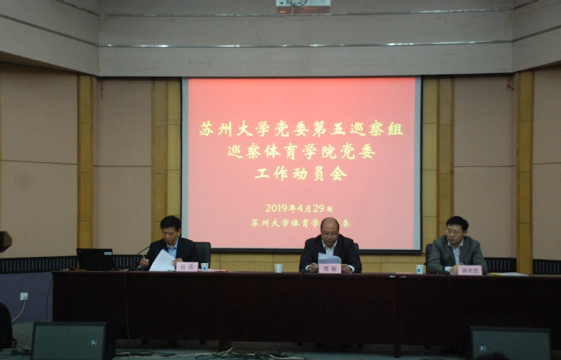 第五巡察组组长、校党委常委、副校长刘标传达了中央、省委及校党委对巡视巡察工作的新要求和新部署及开展校内巡察工作的意义,并就此次巡察工作重点、总体安排和有关纪律要求作动员讲话。他强调,巡察组的各位成员、体育党委及各位党员领导干部要深入学习贯彻中央和省委新部署新要求,充分认识我校巡察工作的重要意义;要根据上级部署和校党委要求,按照“六个围绕、一个加强”和“五个持续”要求,突出问题导向,牢牢把握巡察重点任务,紧扣单位职能职责,坚持“三个结合”,推动学院事业改革发展;学院党委要全力支持配合巡察工作,巡察组要依纪依规组织开展巡察,切实履职尽责,积极推动巡察工作有序有效开展,推动全面从严治党向纵深发展、向基层延伸,为学院和谐健康发展提供坚强的政治保证!