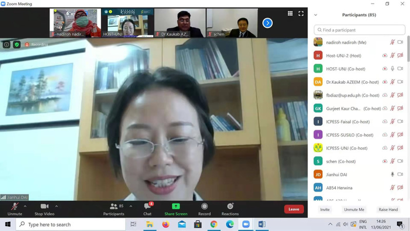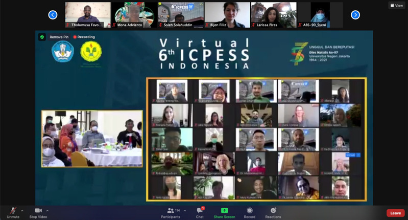 2021年6月10日-13日,由印尼内格里大学与全球健康社区基金会(GCH)主办的第六届国际体育教育与运动科学大会(2021 ICPESS)线上会议顺利举行。此次会议的主题是:“锻炼和运动科学下的积极生活:全球创新和可持续发展的未来趋势”。来自四十多个国家的两百多名专家学者参加了此次会议。我院戴俭慧教授和黄鹂老师带领桑学慧等11名研究生,黄鸿垚等5名本科生参加了此次会议。