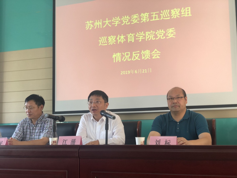 根据学校党委巡察工作统一部署,6月21日下午,校党委第五巡察组巡察体育学院党委情况反馈会在东区文辉楼220会议室召开。校党委书记、校党委巡察工作领导小组组长江涌,校党委常委、副校长、第五巡察组组长刘标及巡察组其他成员、体育学院全体教职工参加了会议。反馈会由体育学院党委书记杨清主持。